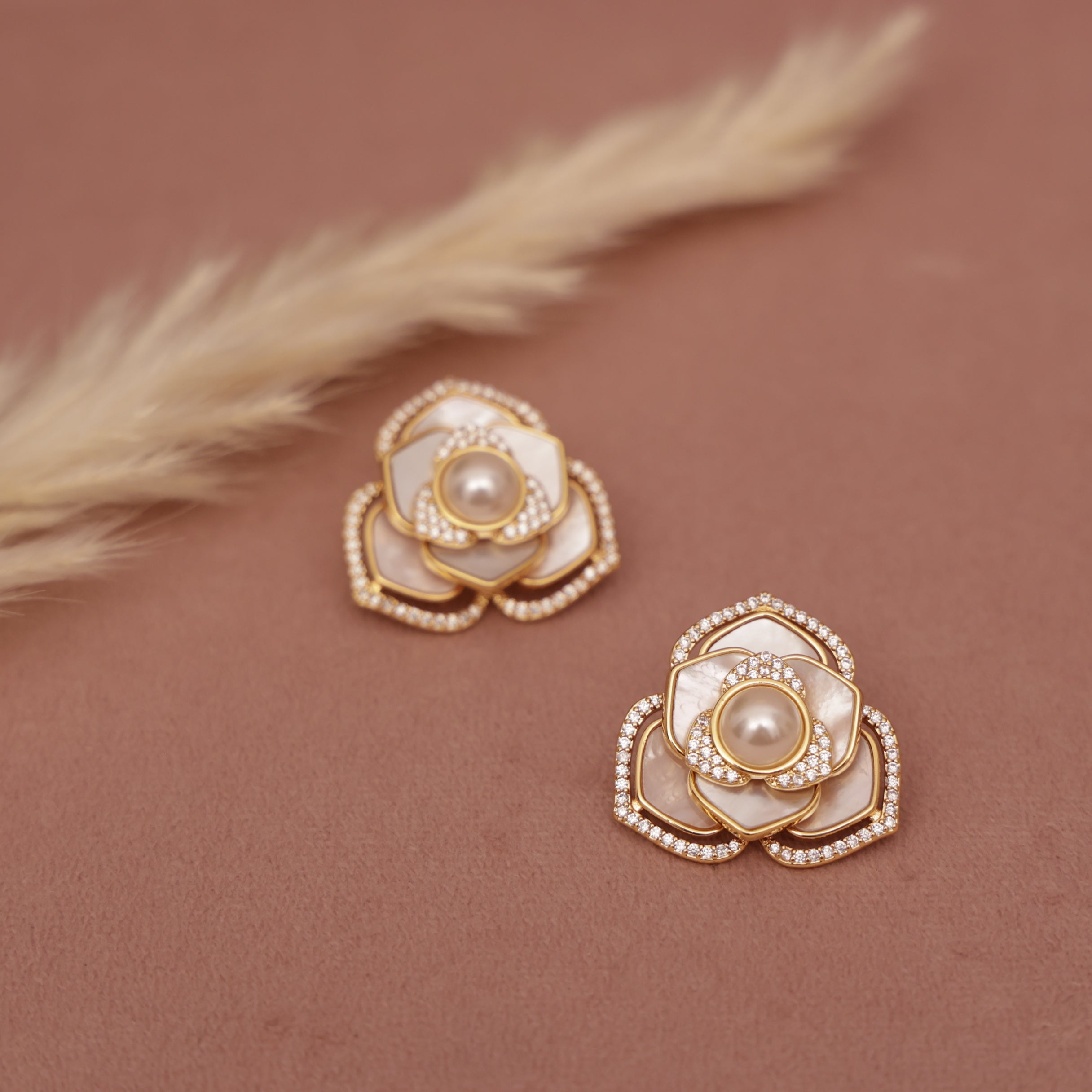 American Diamond Mother Of Pearl Earring Stud ( Tops )