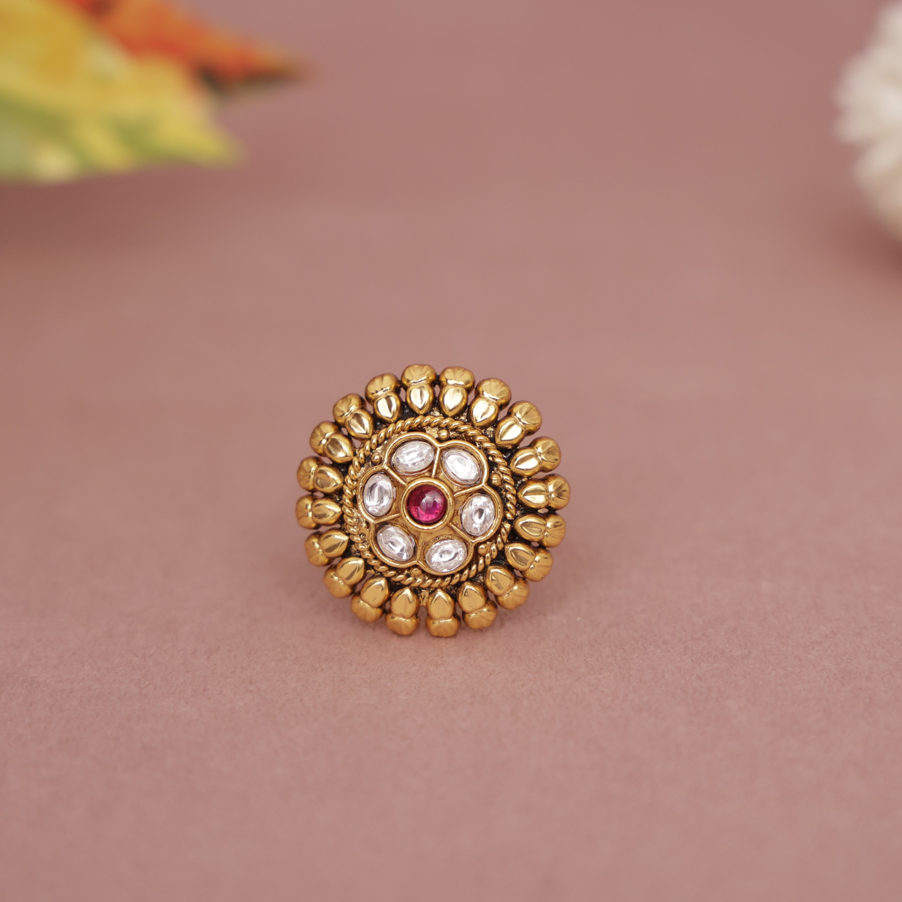 Antique Gold Kundan Heritage Finger Ring