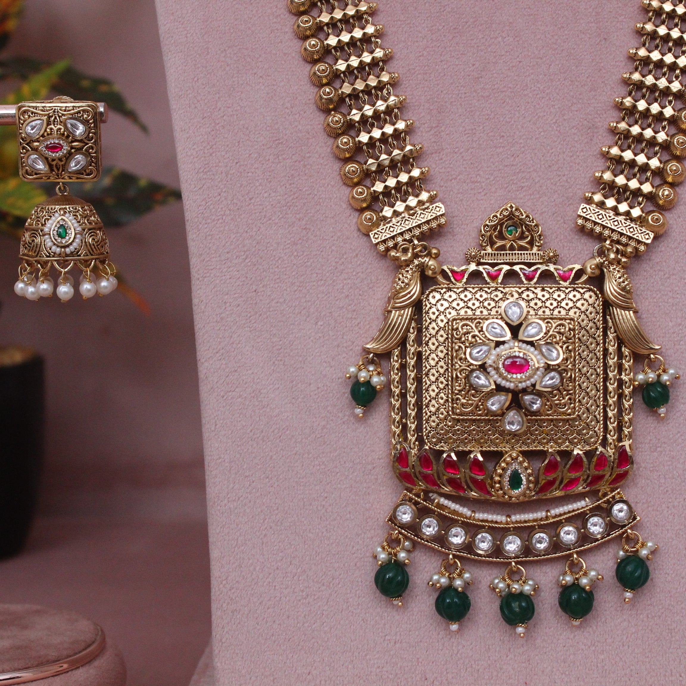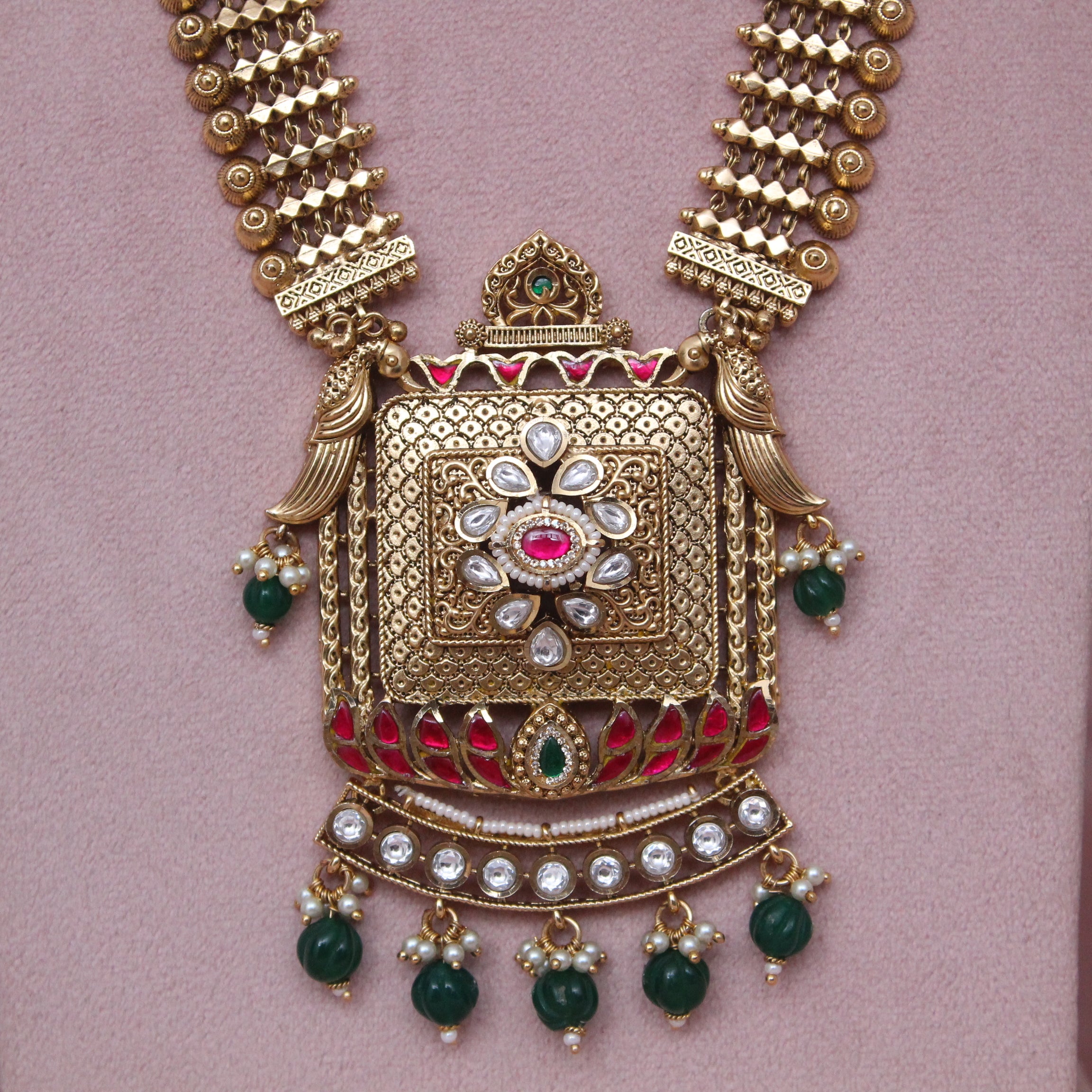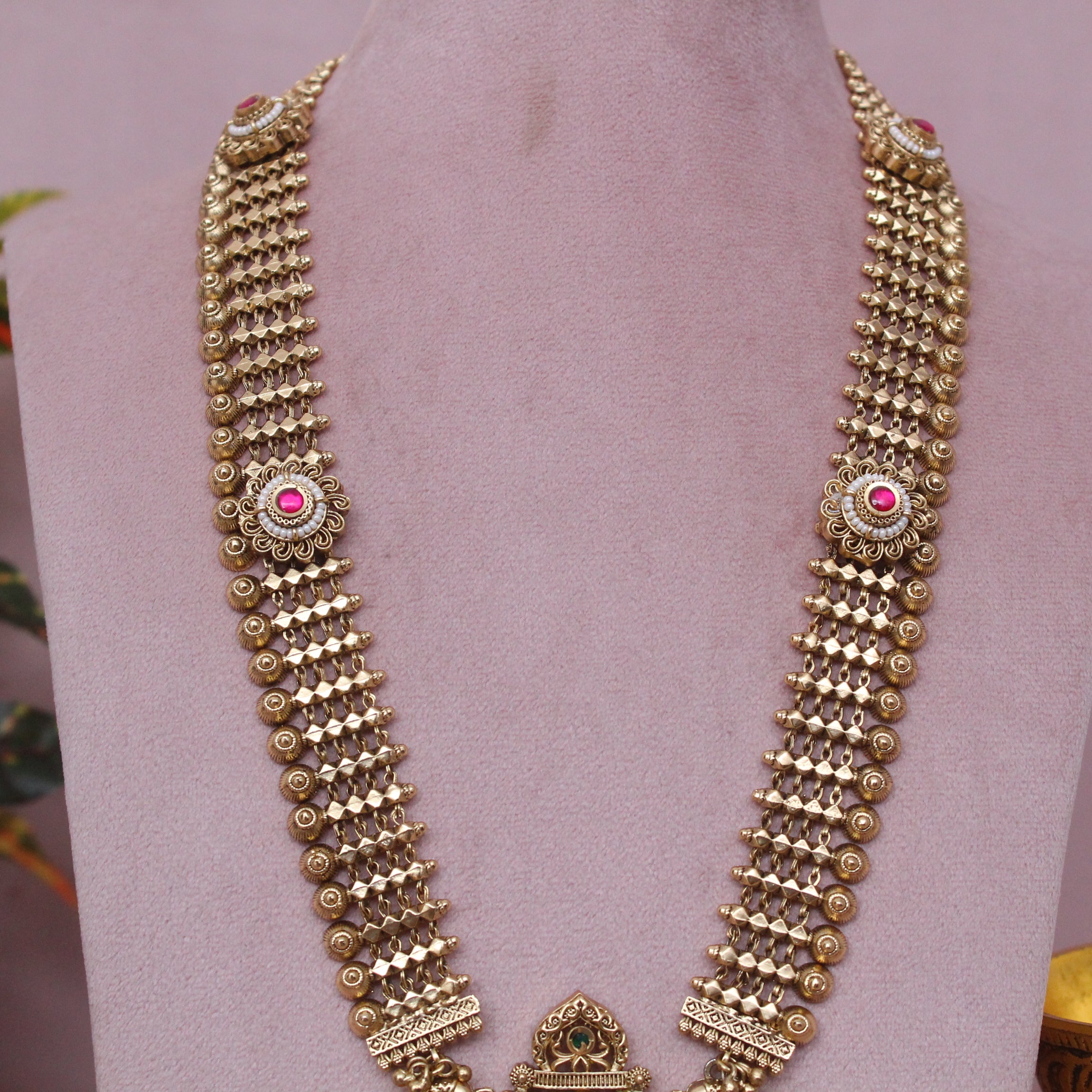 Antique Long Royal Heritage swarovski Chandan Patta Haram Necklace Set