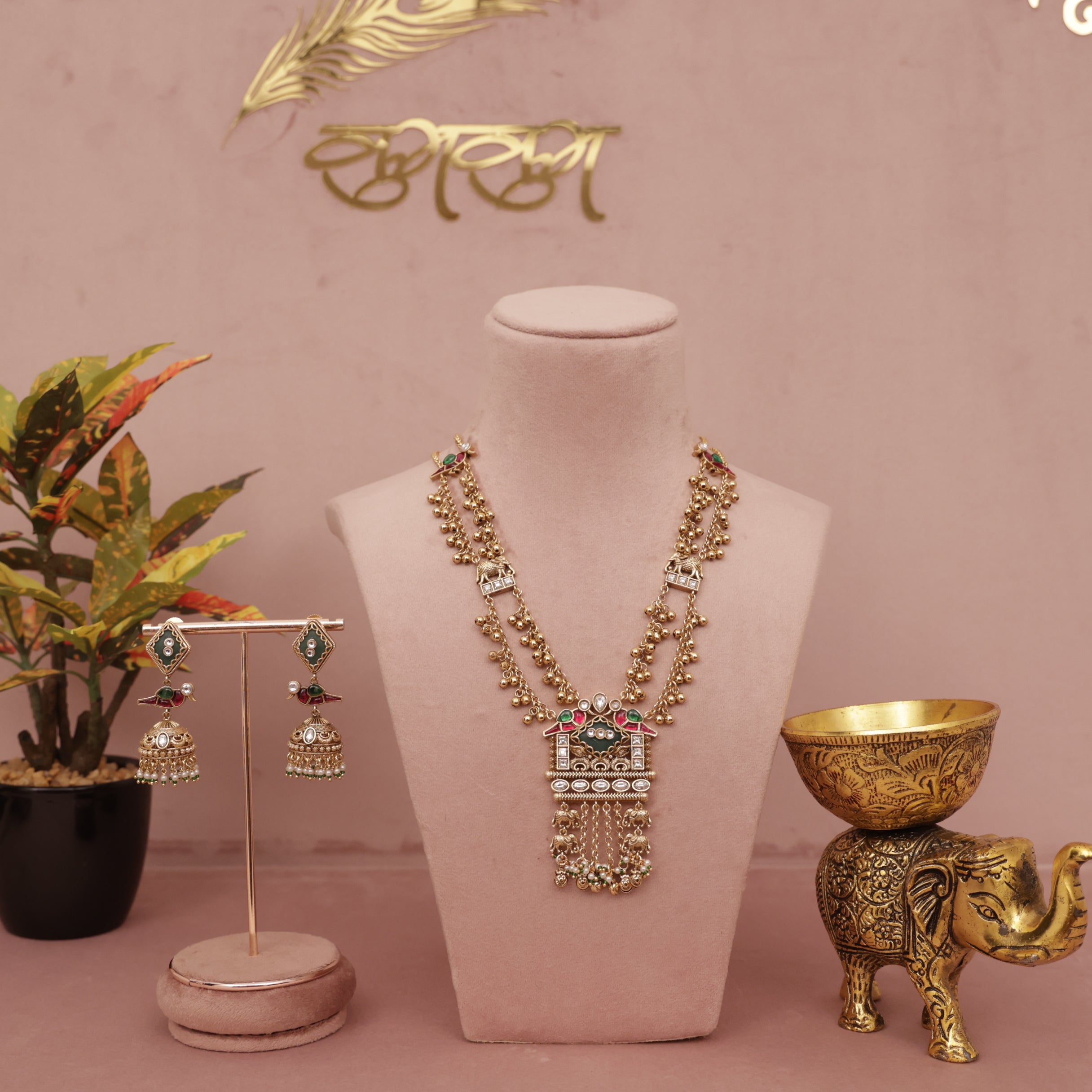 Antique Long Royal Heritage Lariat Pendant Haram Necklace Set