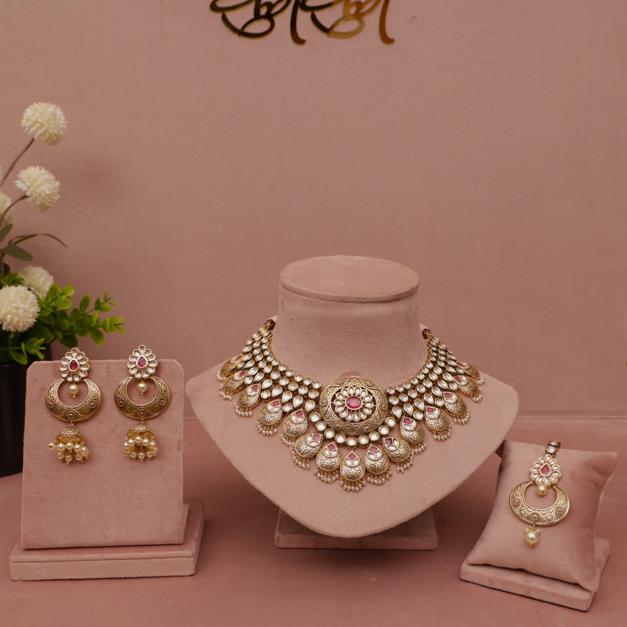 Contains : One Necklace and One Pair of Earrings And Maangtikka