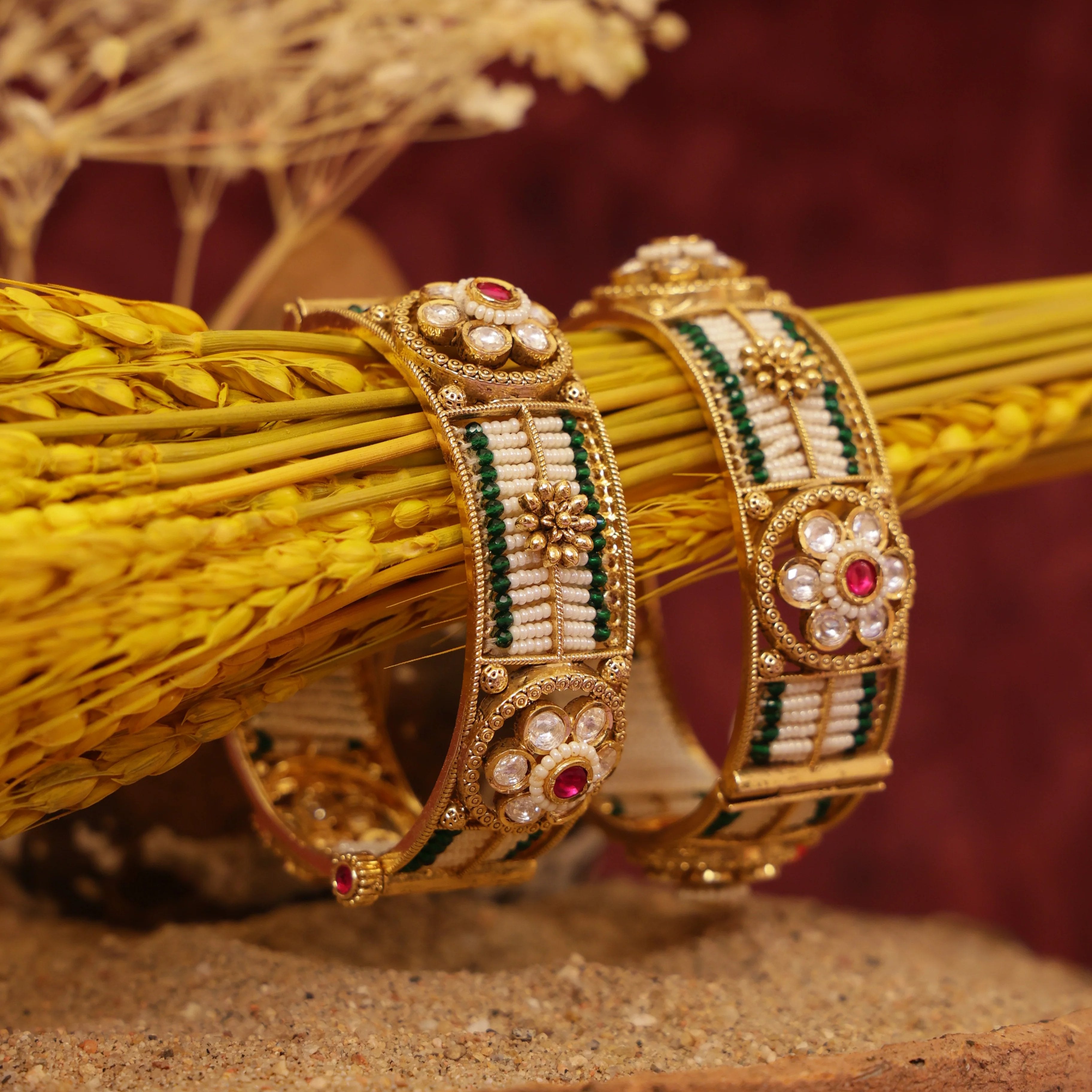 Openable Antique Matt Bangle With Kundan And Beads Work