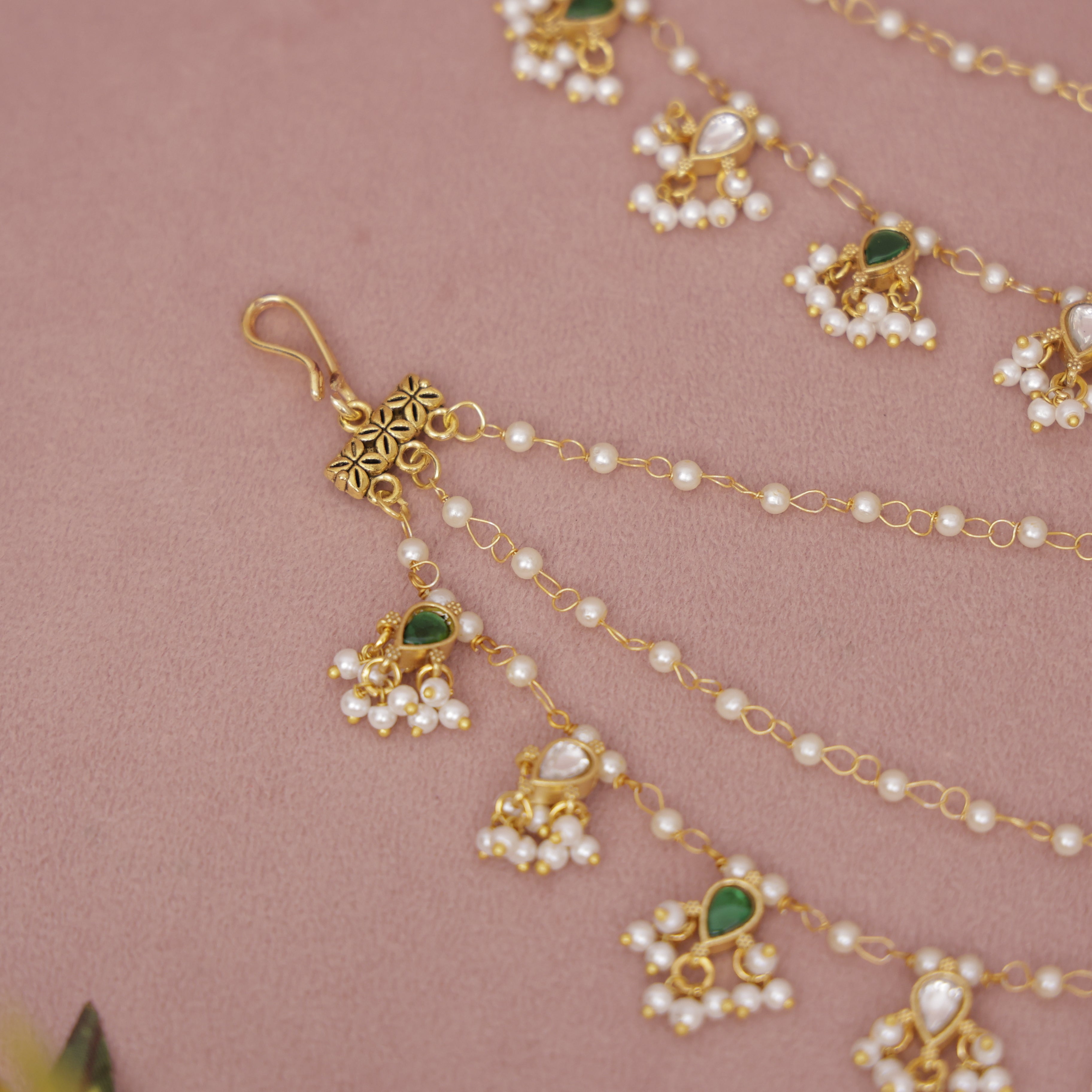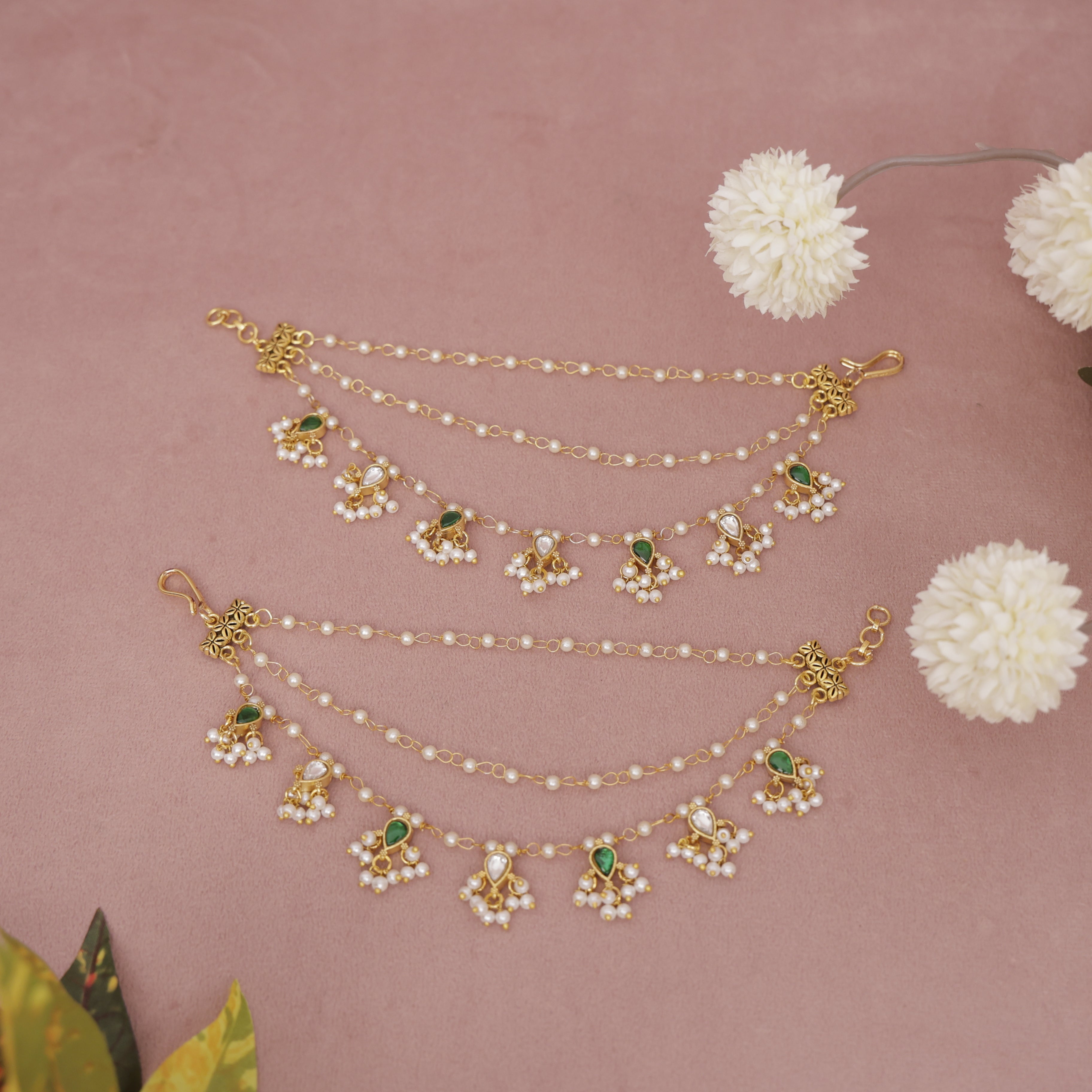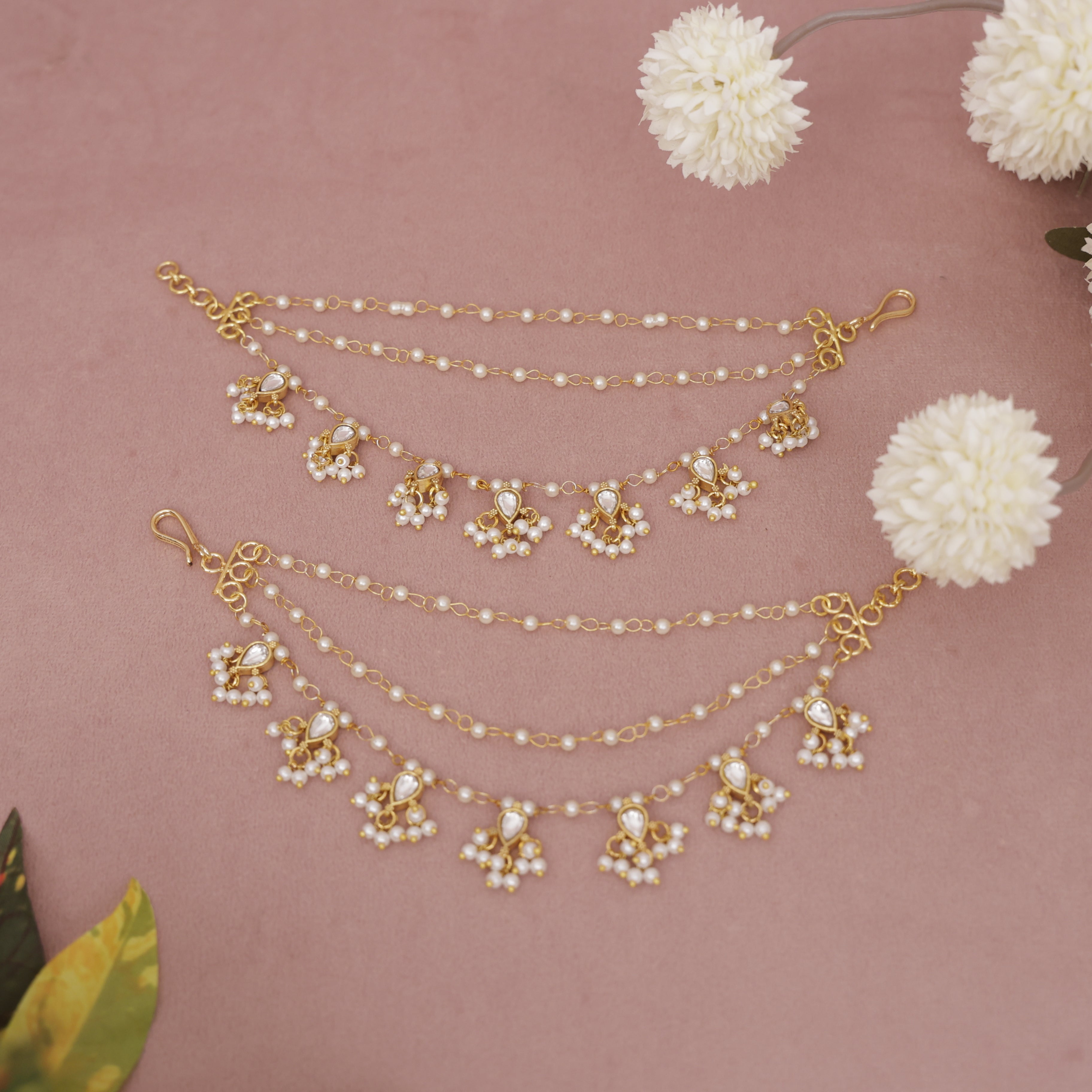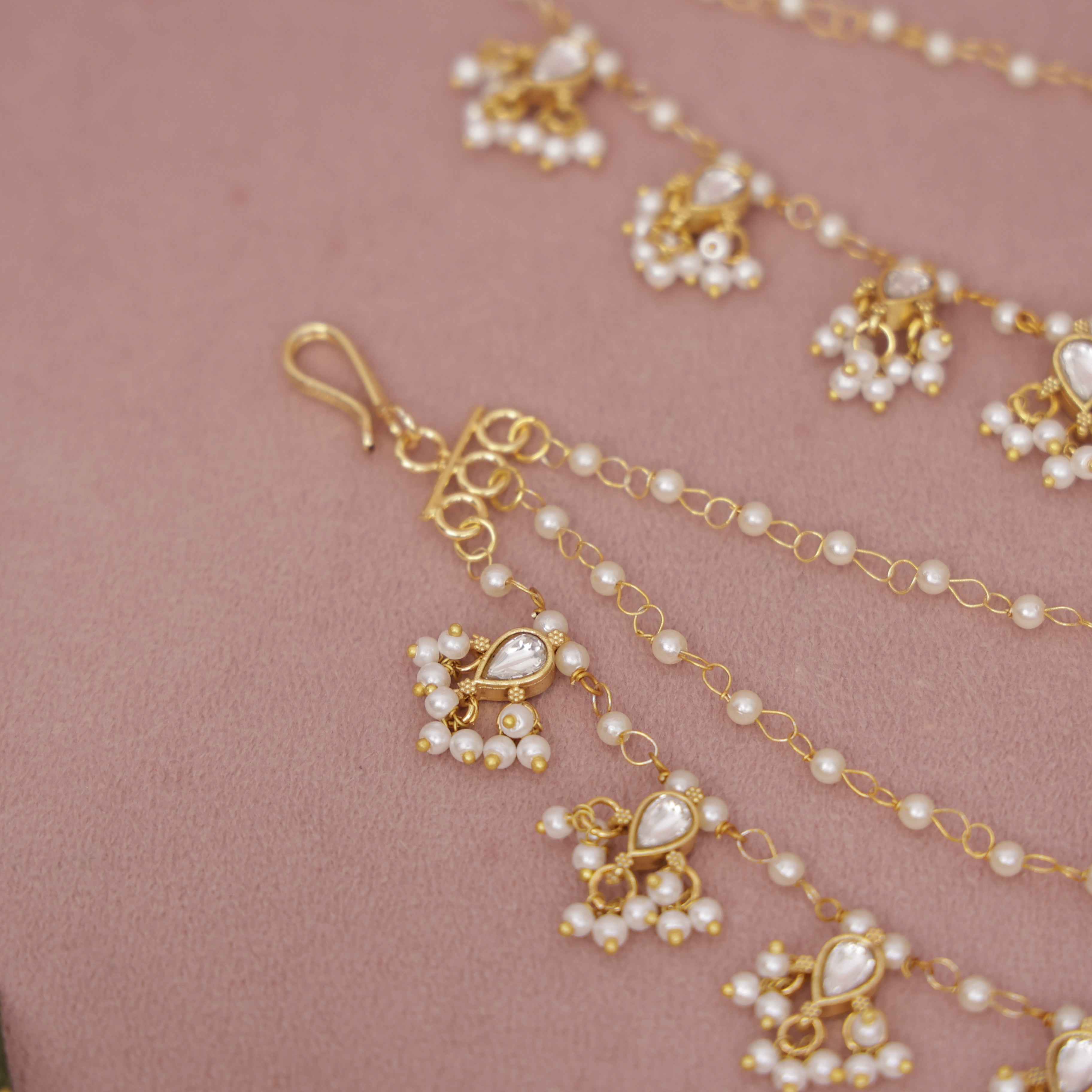 Kundan Drop Earchain, Kanchain, Matil, Sahara chain, Hair chain Earcuff chain,