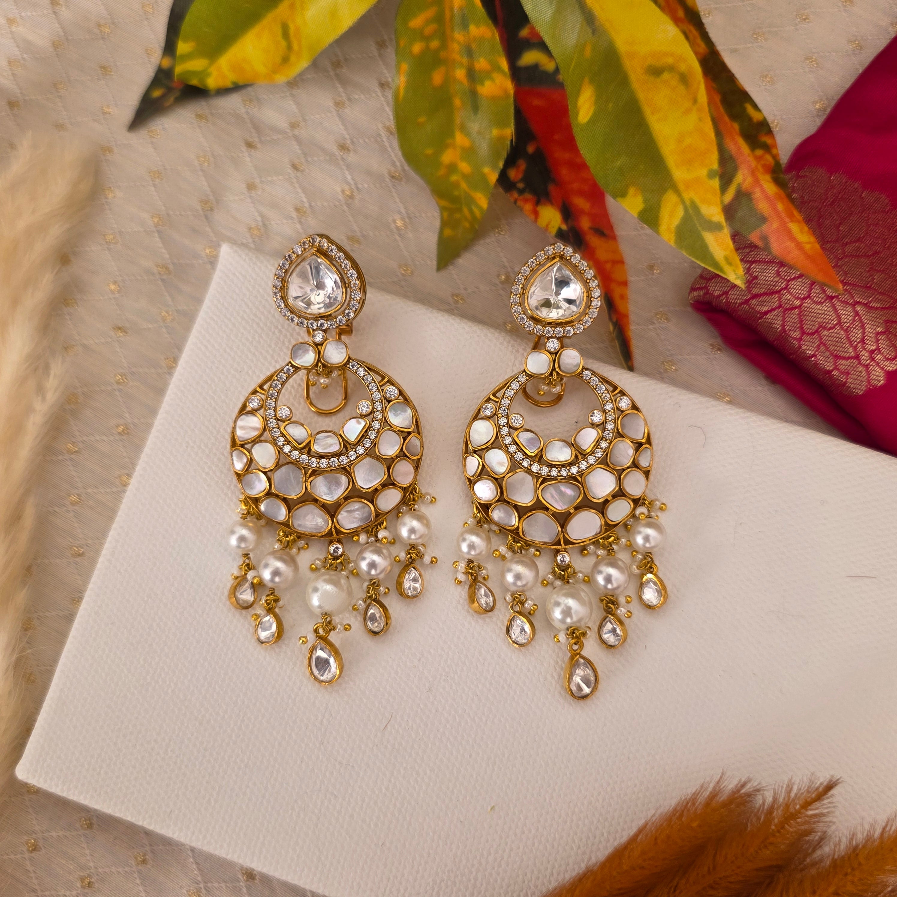 Premium Mother Of Pearl's Kundan New Arrival Chandbali Earring