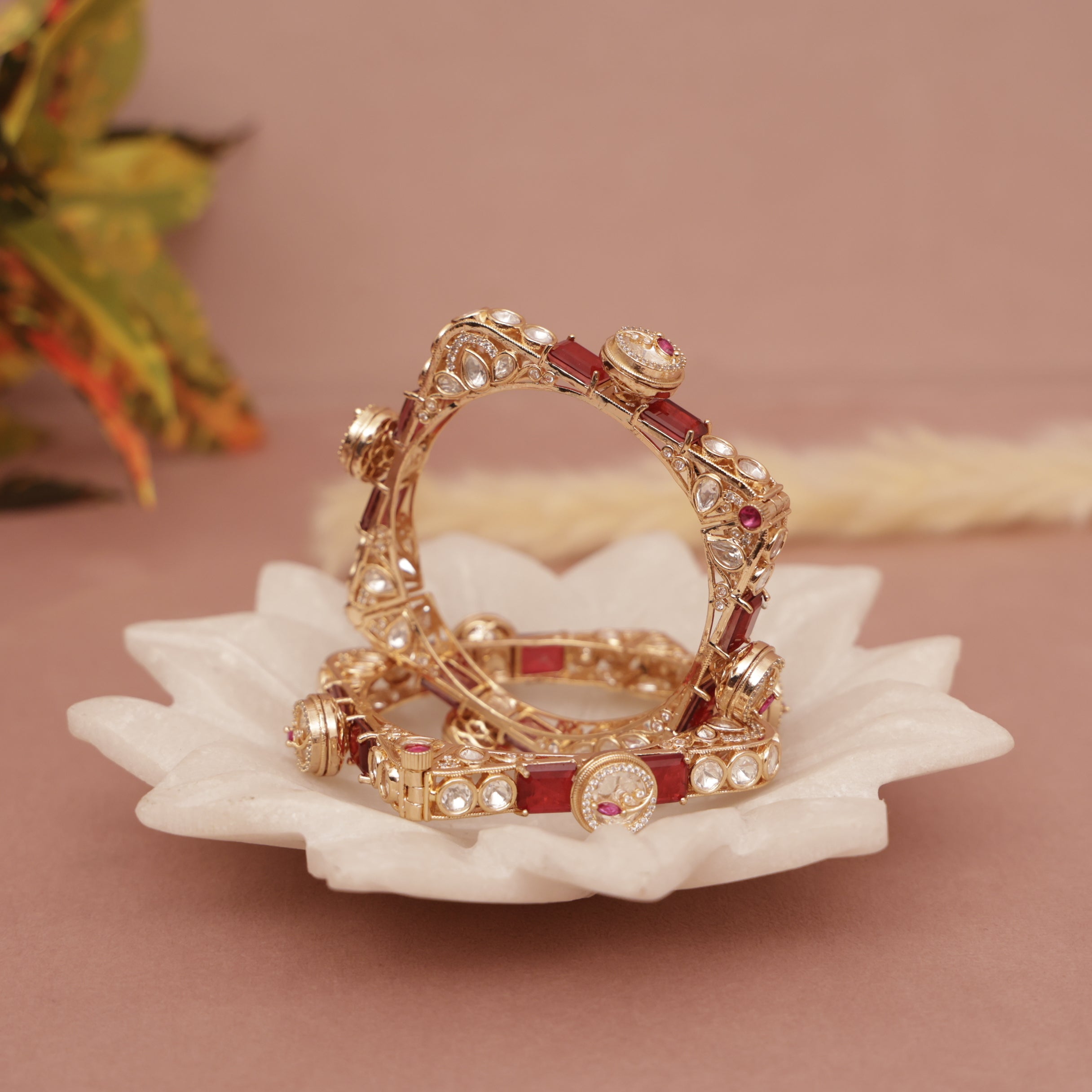 Polki Kundan Square Pachheli Bangle